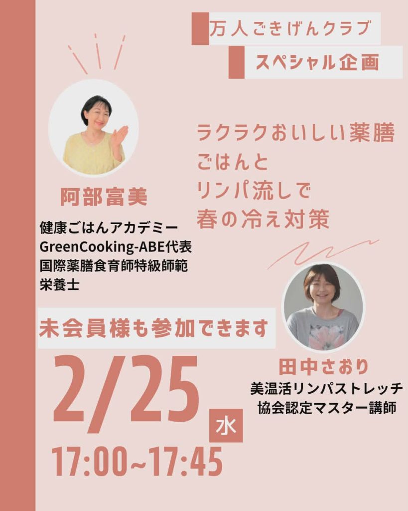 「毎日の薬膳ごはん」あべふみ × 「温活リンパストレッチ」たなかさおり